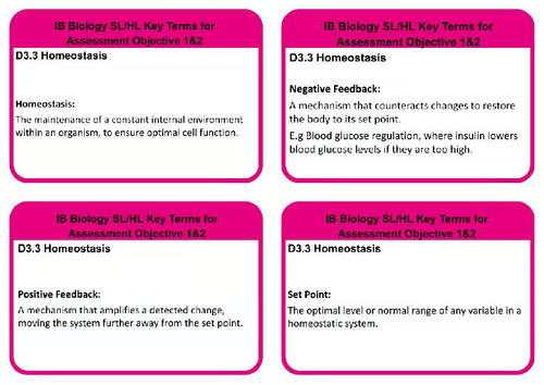 This resource is specifically designed for both IB Biology SL and HL students, focusing on the topic D3.3 HOMEOSTASIS. It aligns with the DP Biology assessment objectives, particularly AO1: Demonstrate knowledge of terminology, facts, and concepts, and AO2: Understand and apply knowledge of terminology and concepts.